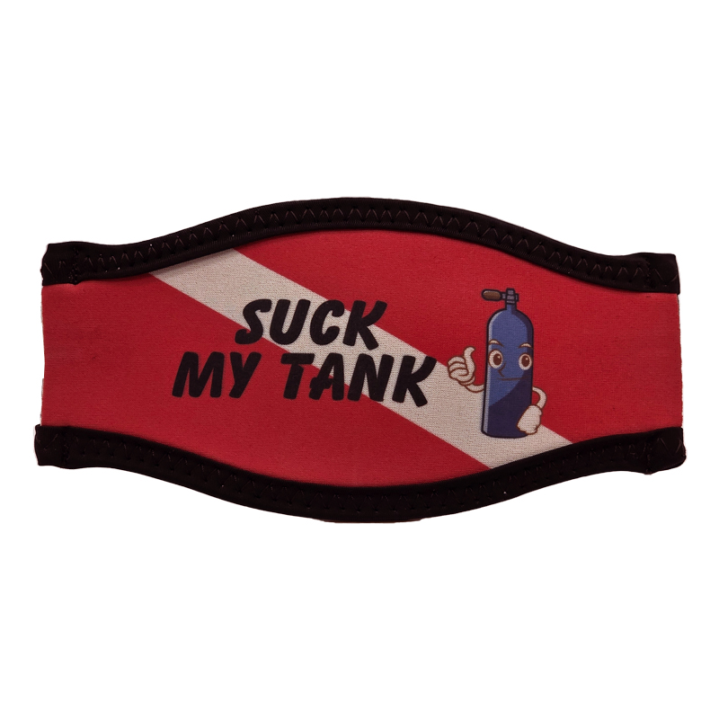 Neoprene DEEP suck my tank Mask Strap! Were excited to introduce you to our range of dive Mask straps, designed with unique stylish patterns that capture the essence of the diving world. Our straps are not only great in style, but they’re also made with high-quality neoprene materials, ensuring durability and longevity for countless dives. We offer personalized orders, so you can customize your strap to suit your individual taste. Plus, our straps boast a universal fit, meaning they’re suitable for any dive mask. So, whether you’re an experienced diver or just starting, enhance your diving gear with a DEEP suck my tank Mask Strap today.